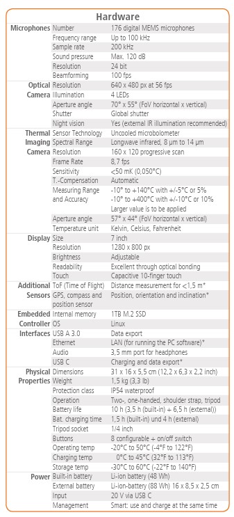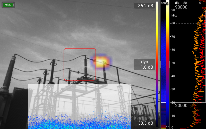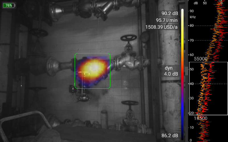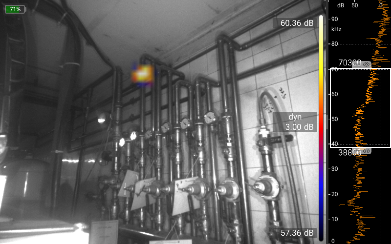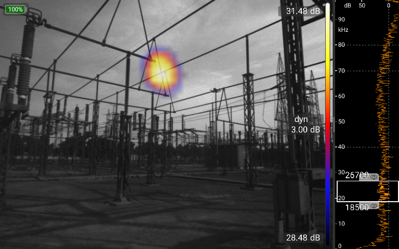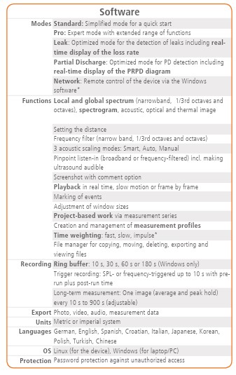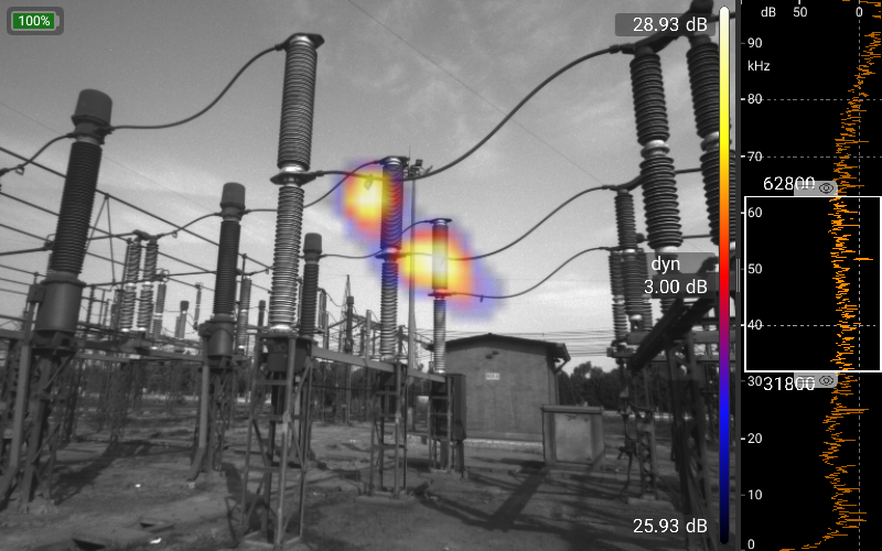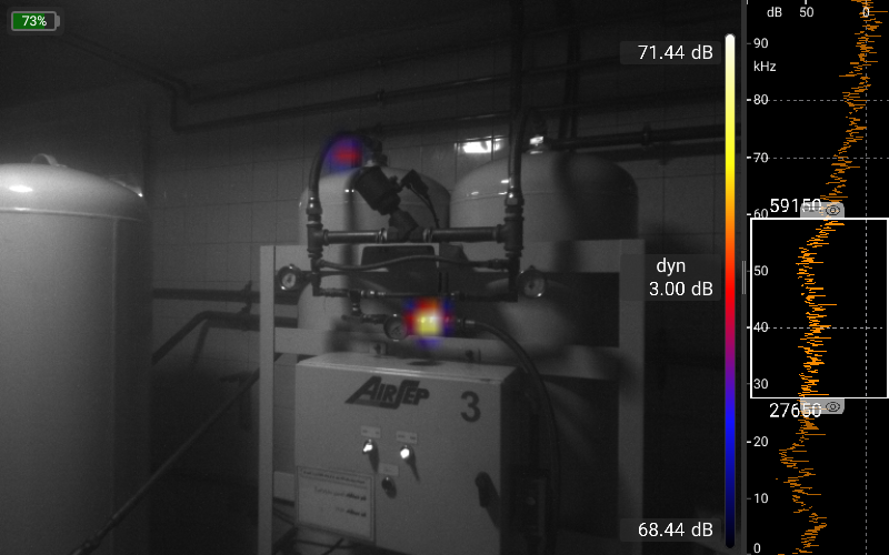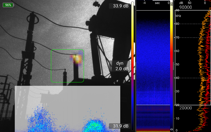 البته، دادههای میکروفون به صورت بلادرنگ تجزیه و تحلیل میشوند. دادههای همزمان از دوربین تصویربرداری نوری و حرارتی و همچنین سایر حسگرها، دریافت بهینه اطلاعات را با عملکرد بسیار ساده و شهودی تضمین میکند. علاوه بر حالت استاندارد که کار با آن بسیار آسان است و حالت Pro که برای تجزیه و تحلیلهای بسیار پیچیده استفاده میشود، حالتهای عملیاتی برای کاربردهای خاص، مانند حالت نشتی برای یافتن و تعیین مقدار نشتی در سیستمهای هوای فشرده یا حالت تخلیه جزئی (Partial Discharge) برای یافتن و ارزیابی تخلیههای جزئی در سیستمهای ولتاژ بالا، پیادهسازی شدهاند.