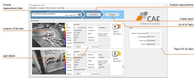 انتقال ساده دادههای اندازهگیری از دستگاه به کامپیوتر از طریق یک فلش USB، امکان تجزیه و تحلیل و ارزیابی سریع اندازهگیریها را فراهم میکند. نرمافزار ارزیابی و مستندسازی نشتی هوای فشرده، در کوتاهترین زمان ممکن، گزارشی معنادار تولید میکند. تمام دادههای مربوطه به وضوح و به طور کارآمد با تصاویر، نمودارها و جداول ارائه میشوند.