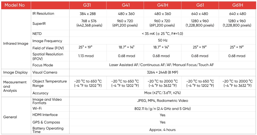 مقایسه مدل های مختلف دوربین ترموویژن سری GX1