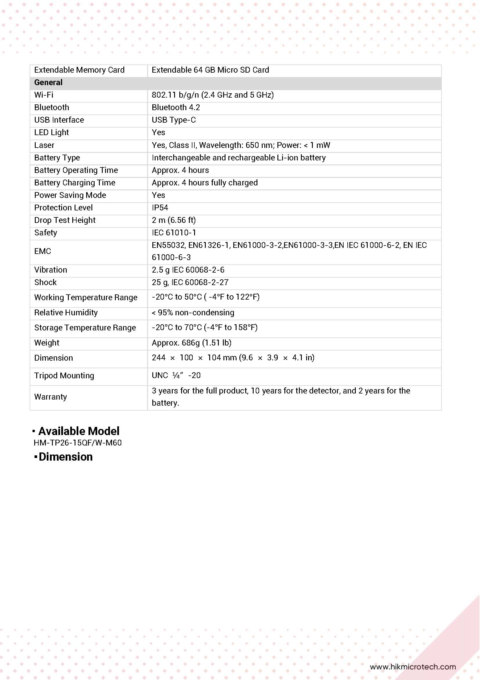 از لینک زیر می توانید دیتاشیت دوربین حرارتی هایک میکرو مدل M60 را دانلود نمایید.