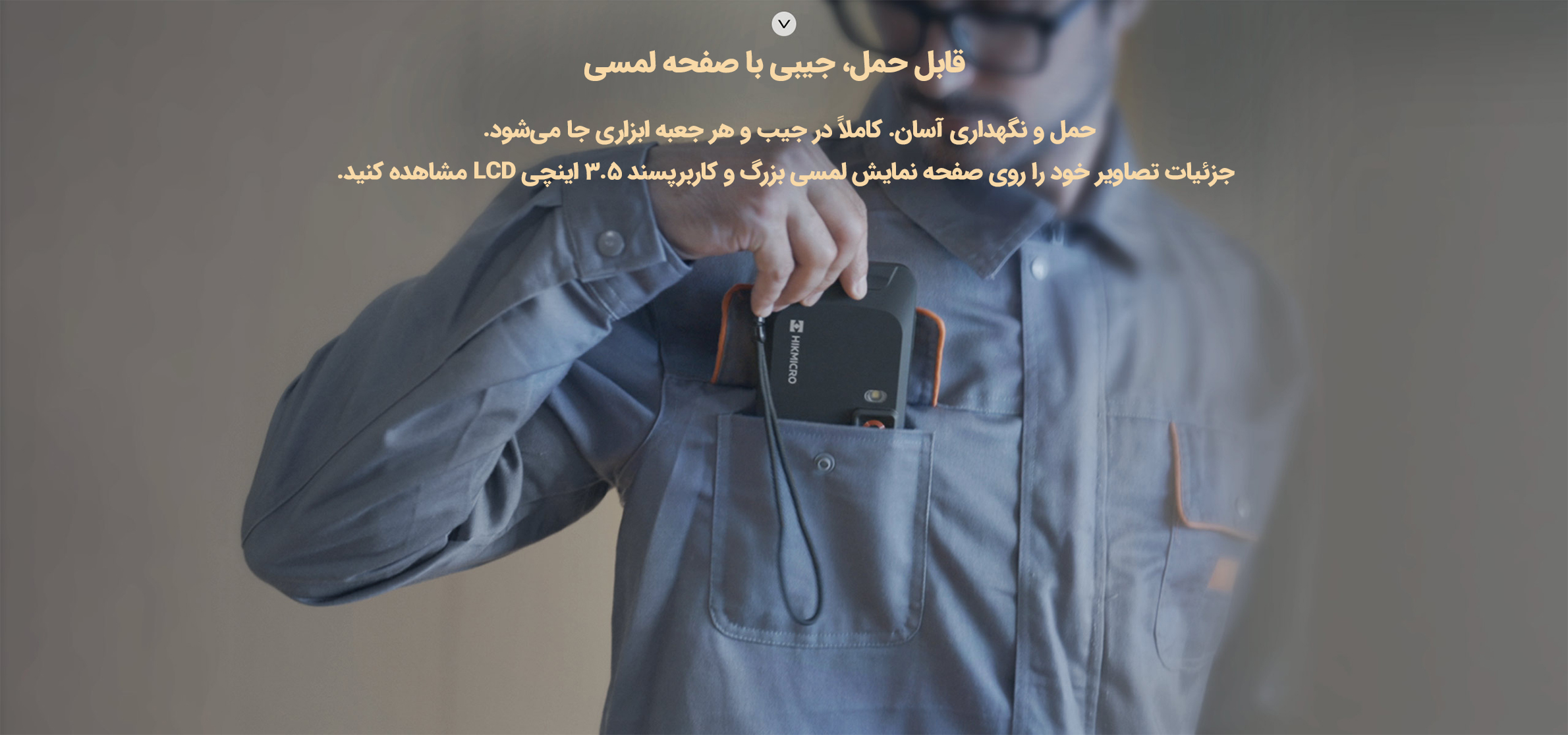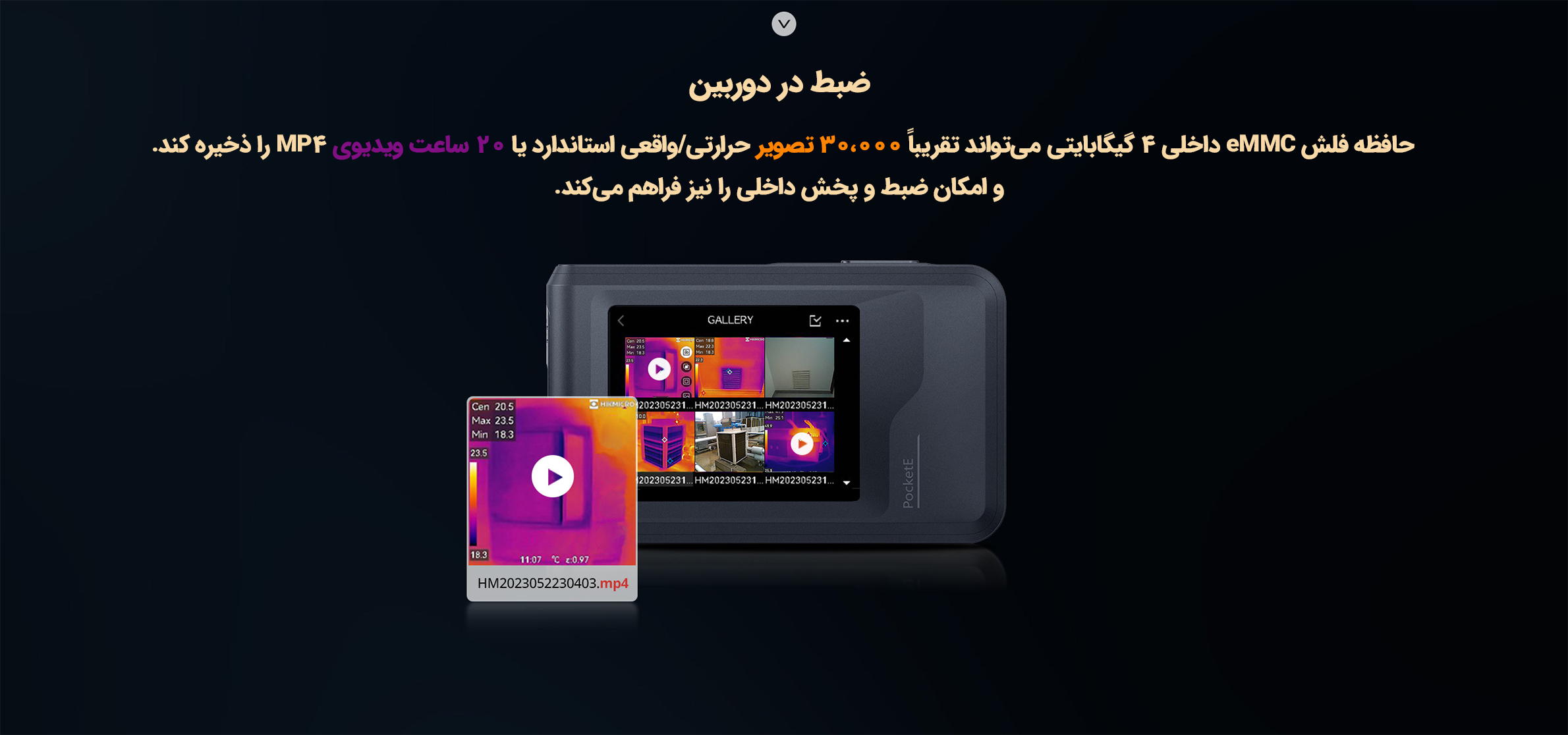 دوربین حرارتی HIKMICRO PocketE مجهز به حسگر VOx با رزولوشن بالا، دوربین نوری 0.3 مگاپیکسلی و صفحهنمایش لمسی 3.5 اینچی LCD است.