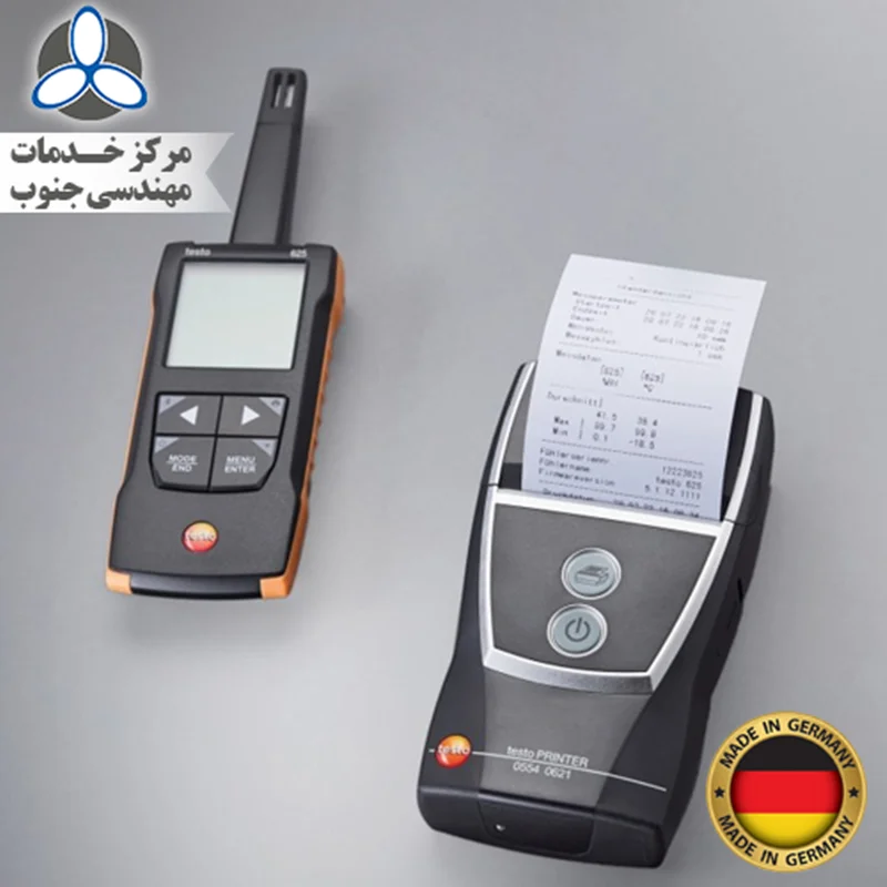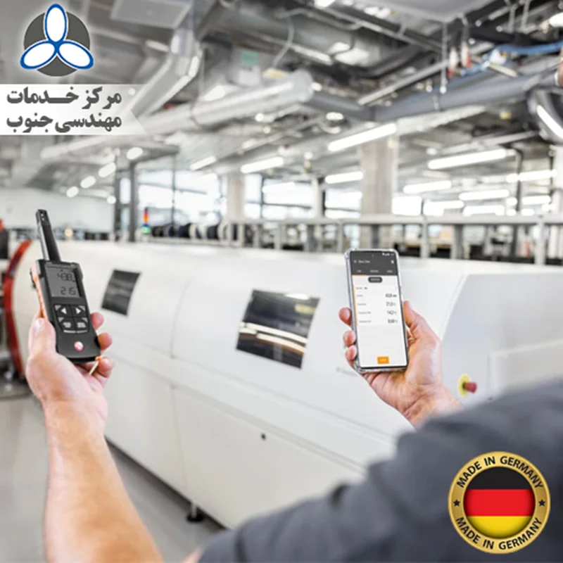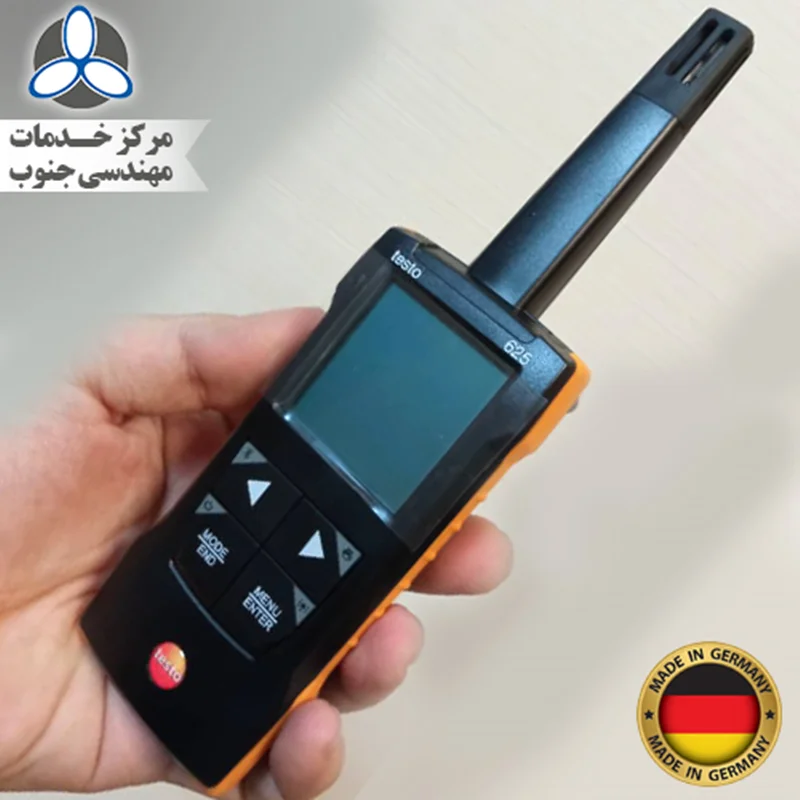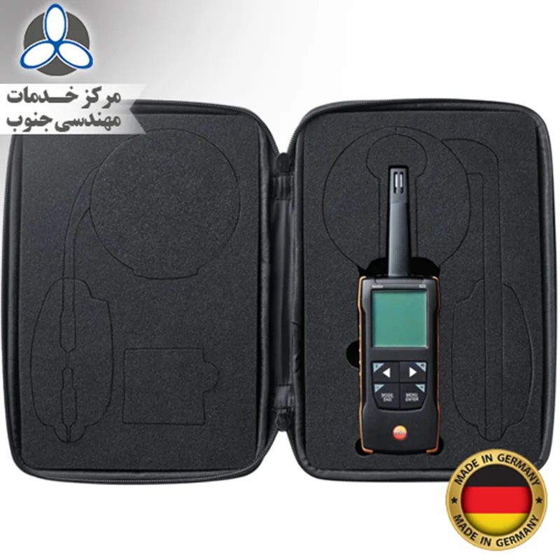 - دستگاه testo 625 - ابزار اندازه گیری رطوبت/دما همراه با اتصال برنامه و زنگ صوتی و کیف حمل.